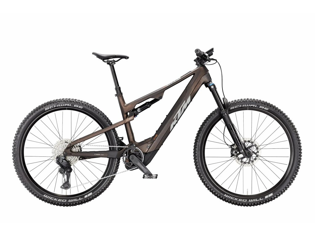 JEZDĚTE S AGILITOU, OBJEVUJTE BEZ HRANIC. Ať už se jedná o vyjížďku panoramatem nebo večerní túru po práci, MACINA LYCAN je vaším spolehlivým společníkem na každém dobrodružství. Se zdvihem 140 mm leží jeho oblast použití pevně v segmentu all-mountain. Jádrem všech modelů LYCAN je robustní hliníkový rám v kombinaci s osvědčeným konceptem STRAIGHT-LINE-LINK (SLL). Díky konceptu Size-Split je rám velikosti S vybaven 27,5" koly, zatímco velikosti M, L a XL jsou založeny na 29" kolech. To zajišťuje, že modely MACINA LYCAN nabízejí dokonale vyváženou geometrii i pro menší jezdce. Bosch Performance Line CX (BDU384Y) posouvá dynamiku a agilitu jízdy na novou úroveň – výkonné, lehké a tiché (max. točivý moment 100 Nm / max. výkon motoru 750 W / max. podpora 400 %). Baterie PowerTube poskytuje kapacitu 800 Wh. KTM se opět spoléhá na osvědčený koncept POWER TUBE TOP LOADER (PTTL) – systém vyvinutý společností KTM pro vyjímání baterie směrem nahoru ze spodní rámové trubky. Díky tomu je manipulace s baterií – vyjímání a opětovné vkládání – snadná.