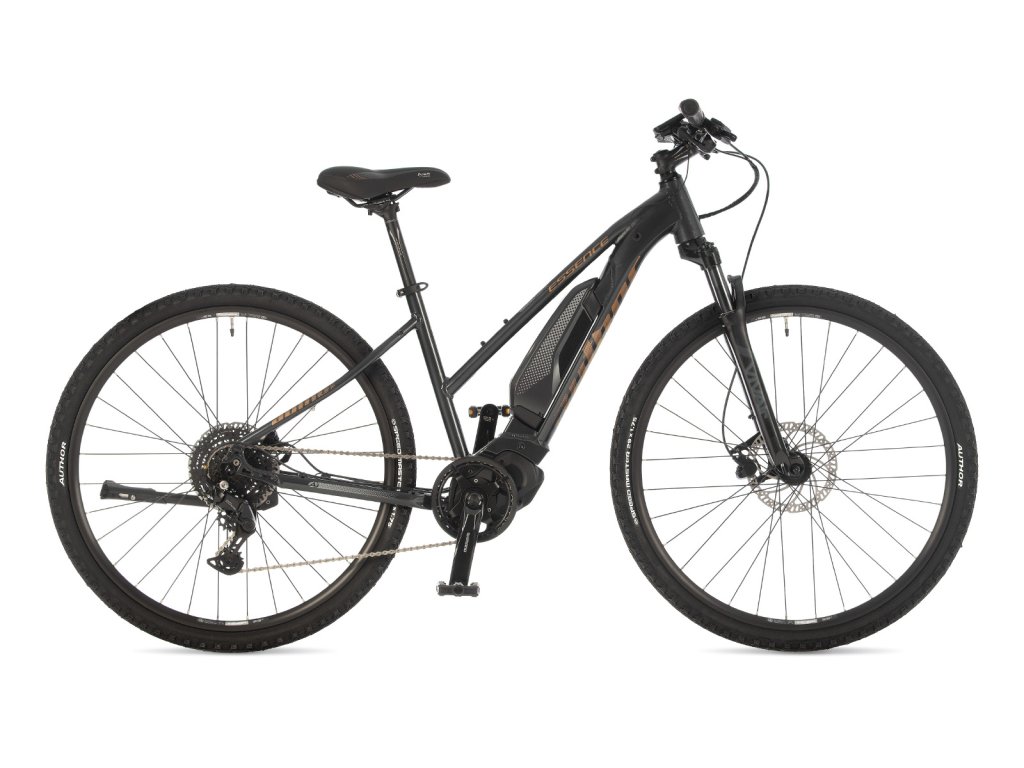 Základní model dámského sportovního krosového elektrokola kategorie E-CROSS 29. Tato kategorie vychází z požadavku doby o větší komfort při běžné jízdě i mimo silnici a popularitu 29" kol. Všechny modely E-CROSS 29 mají zdvih odpružených vidlic 80 mm. Může se pochlubit výborným poměrem cena / výkon. Author Essence nabídne všechny výhody špičkového elektropohonu Shimano STEPS, jehož akumulátor je zapuštěn do spodní rámové trubky. Snížený rám s pohodlným nástupem přináší vynikající komfort a skvělou ovladatelnost. Pro subtilnější ženy je také důležité, že disponuje velice příznivou hmotností díky 2× zeslabovaným duralovým trubkám a lehké vzduchové vidlici RST. O převody rychlostí se stará nová sada Shimano Cues s 9 rychlostmi s rozsahem kazety 11-41 zubů. Standardem jsou hydraulické kotoučové brzdy Tektro. Zbytek osazení tvoří spolehlivé komponenty Author. Kolo je určeno pro sportovně rekreační použití na silnici i zpevněných lesních a polních cestách. K tomu účelu je možné osadit ho blatníky, nosičem a rozličnými brašnami. Velice oblíbené a univerzální elektrokolo, které za svoji oblibu vděčí nejen příznivé ceně.